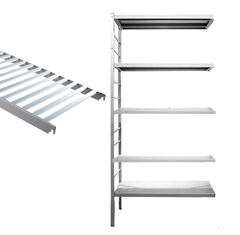 - Geen kruisschoor nodig. Hoewel de onderdelen van de Almasystem rekken vrij licht zijn, vormen ze na montage een stevig en stabiel geheel met een hoog draagvermogen.
